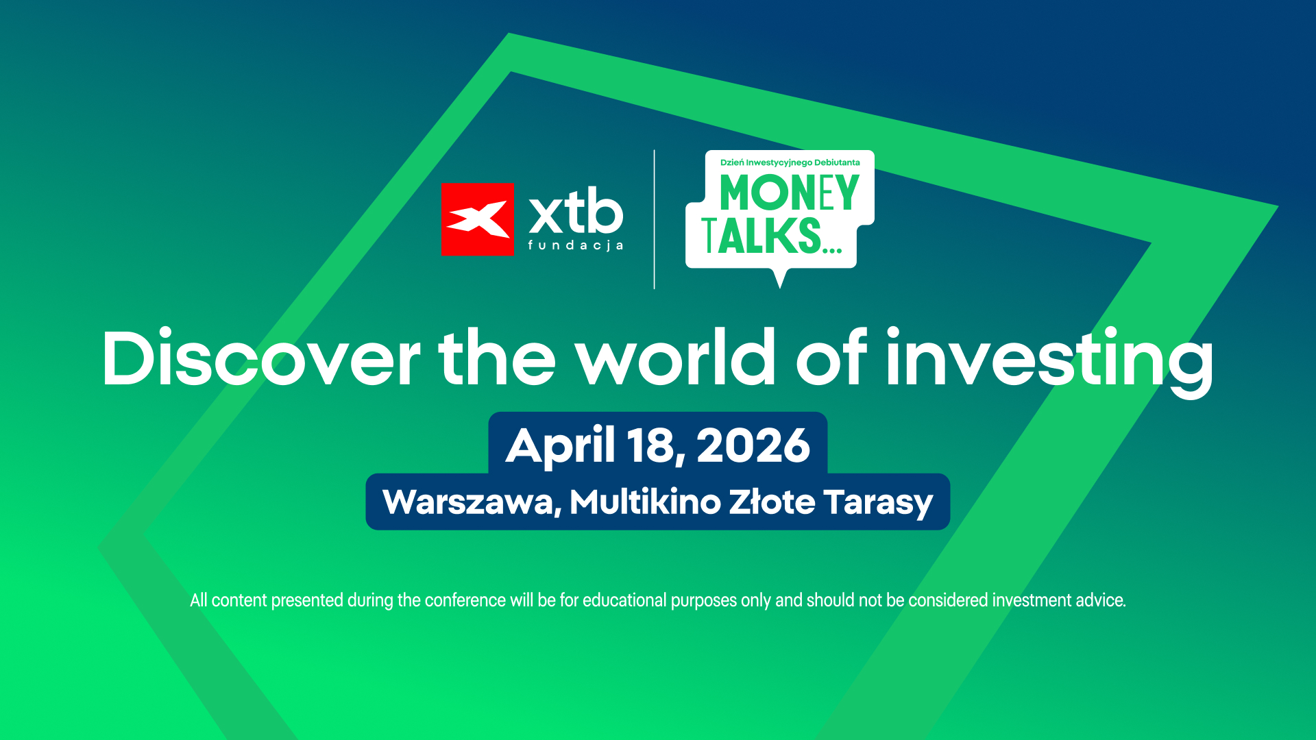 On Saturday, April 18, 2026, an educational event dedicated to personal finance and investing will take place at the Multikino Złote Tarasy cinema in Warsaw. We invite you to register today, number of places is limited! The conference “Money Talks. Investment Beginner’s Day”, organized by the XTB Foundation, is aimed at everyone who wants to begin their journey with investing and better understand how financial markets operate.